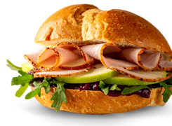 Este sándwich es pura magia navideña. El Lomo de Cerdo con especias Lorenzano se mezcla con el dulzor irresistible de la salsa de ciruela y el toque ácido de la manzana.